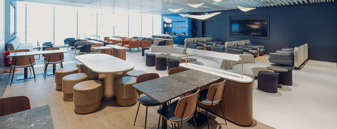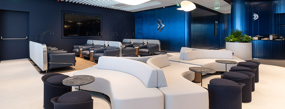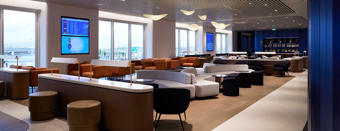 טרקלין העסקים המחודש של AEGEAN בלרנקה מציע לנוסעים אווירה חמימה להירגע, לעבוד בנוחות, ליהנות מקפה או ממשקה או לטעום ממגוון מאכלים במזנון פתוח עשיר. בחלל משופץ בגודל 345 מ״ר, שמעוצב עם חומרים באיכות גבוהה, יצרנו סביבה של יוקרה שקטה ואירוח מתוחכם.